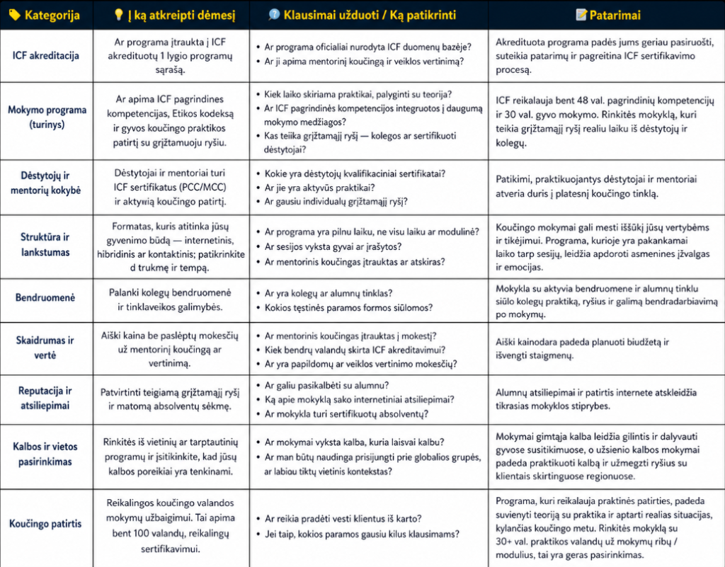 🧭 Kaip išsirinkti tinkamą koučingo mokymų teikėją